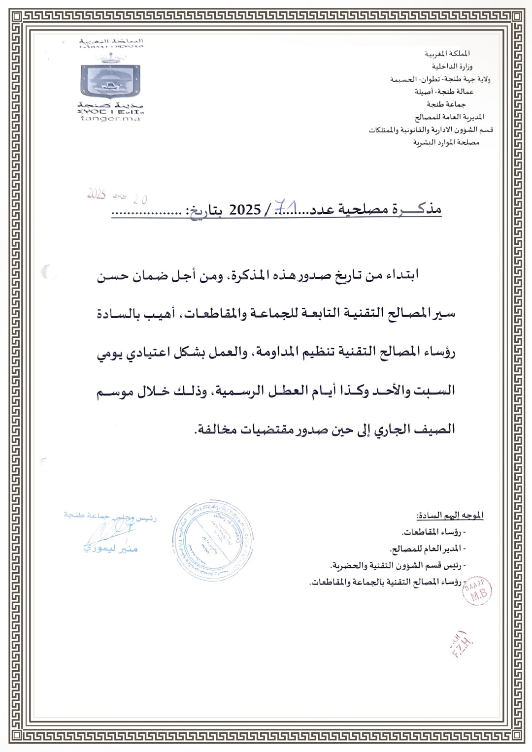 الهيكل التنظيمي لإدارة جماعة طنجة