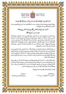 بمناسة الذكرى الرابعة والعشرين لتربع جلالة الملك محمد السادس، نصره الله وأيده، على عرش اسلافه المنعمين، يطيب لرئيس المجلس الجماعي لطنجة، منير ليموري، أن يوجه لجلالته برقية تهنئة وولاء هذا نصها: